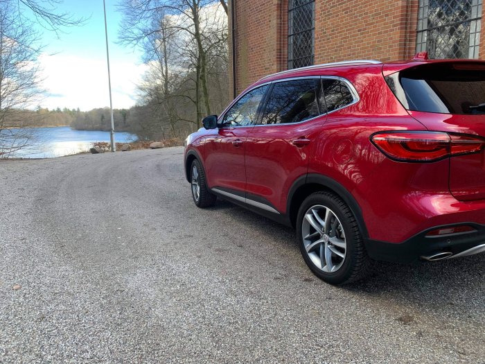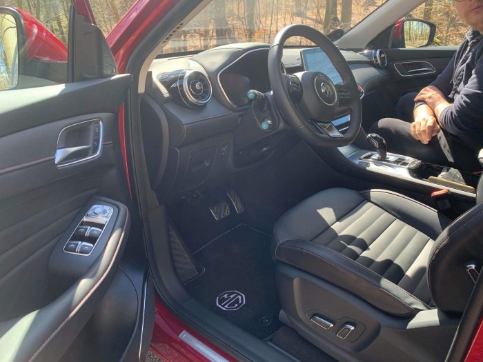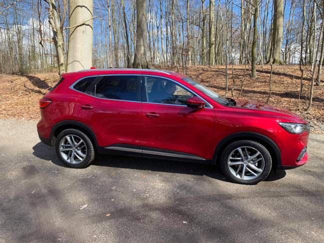 Efter de første timer bag rattet af den røde børnecontainer står det klart at der faktisk er sket forbedringer. Allerede hvis vi tager noget så håndgribeligt som fit og finish i interiøret. Flere af overfladerne er polstret end i ZS samtidigt med at materialevalget føles mere kvalitetsbetonet. Det er næsten lige før at kabinekvaliteten overgår den i ID3 som skuffede vældigt på den konto. Noget andet der også er forbedret er mængden af teknologi. Blandt nyhederne er der blandt andet heldigital instrumentering og et primitivt 360 graders kamerasystem. Og med primitiv mener jeg at det virker men det virker ikke overdrevet lækkert og så føles det meget basalt. Men det er generelt et tema der går igen fra ZS med at infotainment virker fint til husbehov men at det ikke føles Audi lækkert. Men for en gut som mig der normalt kun gør i gamle biler uden nogen form for infotainment systemer. Gør det mig faktisk ikke så meget at brugerfladen ikke helt er spitzen-klasse. Noget der også virker ganske fint men som ikke virker helt exceptionelt er samspillet imellem el og benzinmotor. Drivlinjen består af en 1.5 liters række 4 med turbo og en elektromotor på 120 heste som sætter alle hestene til asfalten igennem en 10 trins automatgearkasse. Den kombineret ydelse for hele drivlinjen er 258 hestekræfter og 250 nm ved 1700 til 4300 omdrejninger i minuttet. Hvilket lyder voldsommere end det er .For når det hele skal slæbe på en stor klumpet hval af en bil som vejer 1.737 kilo hvilket er cirka det samme som egenvægten på en gammel W140 S klasse. Så er det ikke den mest spruttende eller sprudlende køreoplevelse og acceleration man får. Men teknikken spiller fint sammen overgangen til benzinmotor og tilbage igen sker helt gnidningsfrit og så skifter den helt smidigt når man kører med forbrændingsmotor det føles næsten som om at man kører med CVT gear så smidigt den skifter men det er jo en af fordelene ved at have en gearkasse med 10 fremadgående gear. Men som nævnt før fungerer det hele fint men det føles ikke decideret fantastisk og som noget der sætter ens verden i brand hvor man tænker at det her er lækker mekanik. Derimod føles EHS ligesom ZS som en meget gennemsnitlig leverpostejs bil som ikke gør noget forkert men heller ikke noget framragende. Noget der også føles ekstremt mainstream og sikkert er køreegenskaberne. I ved jo at jeg elsker biler der får en til føle noget helt bestemt igennem design mekanik og køregenskaber og så er det lige meget om det er min egen Pajero V20 der kører som en prærievogn på vejen men som til gengæld kan æde lidt af hvert ude i terrænet eller en gudesmuk 348 spider der bare er en af de mest tilfredsstillende biler at køre hvis man tæller hele parken. Men sådan en bil er EHS ikke det er en bil der leverer den mest trykke og ufarlige og stille og rolige køreoplevelse. Men det er den til gengæld god. Under stille kørsel styrer den meget neutralt hvor at styretøjet er let og flydende ved lave hastigheder hvor så at stramme op når man bevæger sig over byhastighed. Det eneste fart og tempo man kommer til at mærke i denne bil er at hvis man kommer til at spinde en smule med forhjulene under igangsætning indtil at antiskrid slår til. Også ved motorvejskørsel gør MGeren ikke meget væsen af sig den føles solidt plantet på banen selv ved 130 i timen og modsat ZS som havde lidt højere tagræglinger var der ikke så meget fartvind fra taget af. Men hvad med den famøse rækkevidde-angst. Den er selvfølgelig ikke så stor når man kører hybrid under vores rundfart i Odense om mandagen hvor vi skulle ordne en masse ærinder blev der ikke brugt overdrevet mange af de dyre dråber. Men når man kører meget motorvej og når man har en lidt frisk kørestil så er den lidt forslugen. Og da tankkapaciteten kun er på 37 liter er det noget man skal værre opmærksom på. Men det hjælper at man har et sikkerhedsnet i form af benzinmotoren så man ikke skal værre alt for afhængig af ren eldrift. Og dog da vi om onsdagen var på langtur kom vi i den uheldige situation at vi kom til at løbe tør for strøm. Det er dog ikke ligeså katastrofalt som at gøre samme fejl i en ren elbil så gør det stadigvæk at man pludselig får nogle hundred kilos dødvægt der vejer bilen ned og derved forøger forbruget. Og da tank-kapaciteten som sagt er på bare 37 liter giver de ekstra kilo noget af et hak rækkevidden. Men det leder os også videre til min konklusion som lyder på. At EHS som brugsbil er ganske i orden om end meget ordinær hvor den ikke tilføjer noget spændende eller ekstraordinært til bilejerskabet. Men til gengæld er mængden af standardudstyr meget respektabelt i det testede luxury udstyrs niveau. Yderligere gør hybriddrivlinjen bilen mere brugbar ude i virkeligheden hvor man ikke har nær så meget rækkevidde-angst som i en ren elbil. Men hvor man stadigvæk skal have et meget specifikt kørselsmønster før at hybrid giver mening. For jeg fandt ud af at jeg gider ikke at stå vente i flere timer på at bilen lader op. Men vent !? Der er mere. For nedenunder kan du læse Martins alias andenpilotens test af EHSeren.