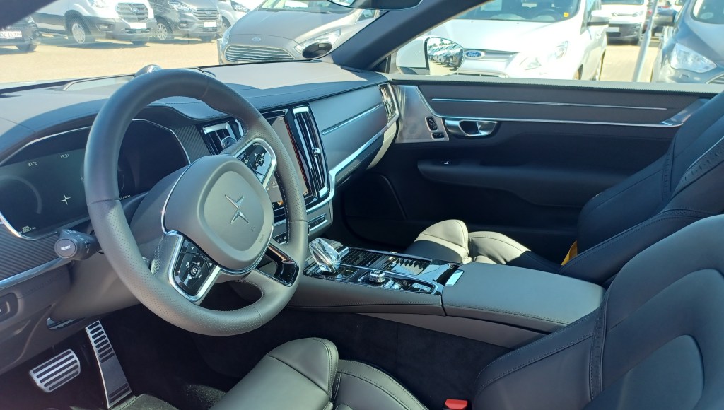 Dem af jer der er kyndige i bilhistorie. Kender sikkert til Volvo P1800 som var en yndig og eksotisk udseende coupé der blev produceret op igennem 60erne. Hvor at den blev bygget på meget af den samme mekanik som Amazone og 140 serien. På en måde kan Polestar 1 godt ses som den spirituelle afløser til P1800. Motoren har 4 cylindre ligesom P1800 og så har man et stilfuldt og elegant eksteriør design. Men designet er virkelig noget særligt. Til at starte med er proportionerne helt perfekte hvilket langtfra er tilfældet ved mange moderne biler. Og så sidder den bare helt perfekt hvad angår frihøjde og fælgmontering. Men elsker bare den skandinaviske minimalisme der præger designet både indvendigt og udvendigt. Men når man også har detaljer som den fulde LED belysning og glastaget giver det designet en ultra moderne nærmest futuristisk udstråling. Førerpladsen er også helt perfekt det er én af de få nye biler hvor at man faktisk har skænket ergonomien en tanke. Man har fysiske knapper til de mest brugte funktioner som alle er logisk placeret. Og så er A stolperne nogle af de mest tynde i nogen ny bil. Så udsynet er ganske iorden. Selv brugergrænsefladen i infotainmentskærmen er logisk indrettet. Og dog ville den overhovedet ikke prøve på at genkende min håndskrift da jeg prøvede at bruge håndskrift-genkendelsen til at foretage ruteindtastning. Men det har andre systemer også problemer med så min håndskrift er åbenbart ikke særlig computervenlig. Materialevalget og kvalitetsfornemmelsen er fra øverste skuffe. Der er delt rundhåndet ud i hele kabinen med ægte kulfiber-trim i satin finish napa-læder og børstet aluminium. Alle knapper og kontakter føles lækre at betjene og så står alle syninger på betrækket snorlige og perfekte. Men heldigvis er køreegenskaberne også helt iorden. Den styrer let og smidigt men stadigvæk rimelig præcist. Der er ikke så meget vægt i styretøjet men det behøver der heller ikke at værre i denne biltype. Undervognen er lidt kontant men det er ikke ligeså meget som i Polestar 2 der bare føles hård for hårdhedens skyld. For 1eren ligger ganske godt i svinget når man tænker på at det er en tung bil på over 2.3 tons. Men det er virkelig på motorvejen at den brillere. Vindstøjen er ganske lav selv ved 130 i timen hvilket ikke altid har været tilfældet når man kører med sprodsefrie døre. Det er faktisk kun rullestøjen der er lidt dominerende men det skyldes selvfølgelig den store fælgmontering. Og så føles vognen retningsstabil den æder bare kilometrene uden det store besvær. Angående drivlinje er man også godt stillet. Man har 2 elektromotorer der tilsammen yder 238 heste 1 integreret starter-generator på 68 hestekræfter samt en 2 liters række4 med biturbo der yder 328 heste. Det hele resultere i en systemydelse på 600 hestekræfter og et omdrejningsmoment på 1000 newtonmeter. Den store råstyrke kan sagtens mærkes den føles ikke helt vanvittig men den føles stadigvæk hurtig nok. Og så arbejder teknikken hurtigt og effektivt. Overgangen imellem benzin og eldrift sker gnidningsfrit og så skifter den 8 trins automatgearkasse silkeblødt ved stille kørsel men hvorimod at den stadigvæk reagere prompte når man skal foretage en hastighedsændring uanset om man bruger skiftepadlerne eller kører i helautomatisk program.